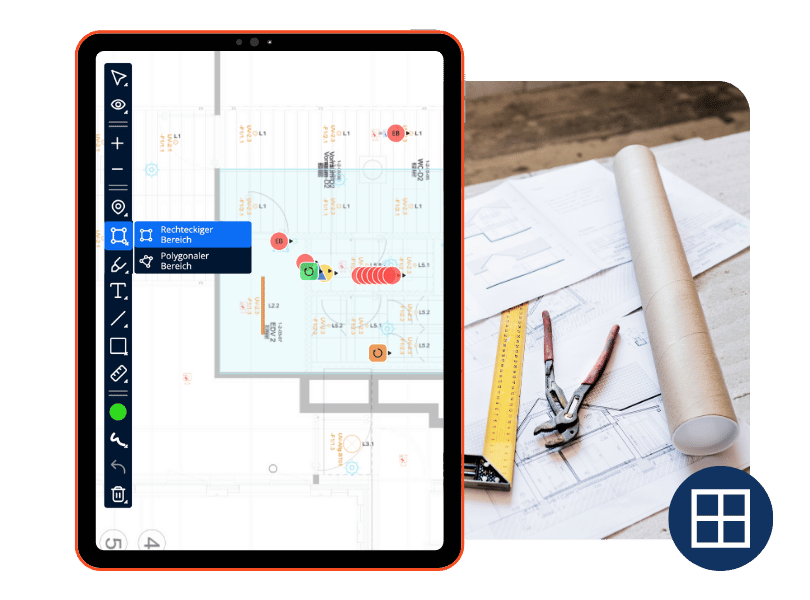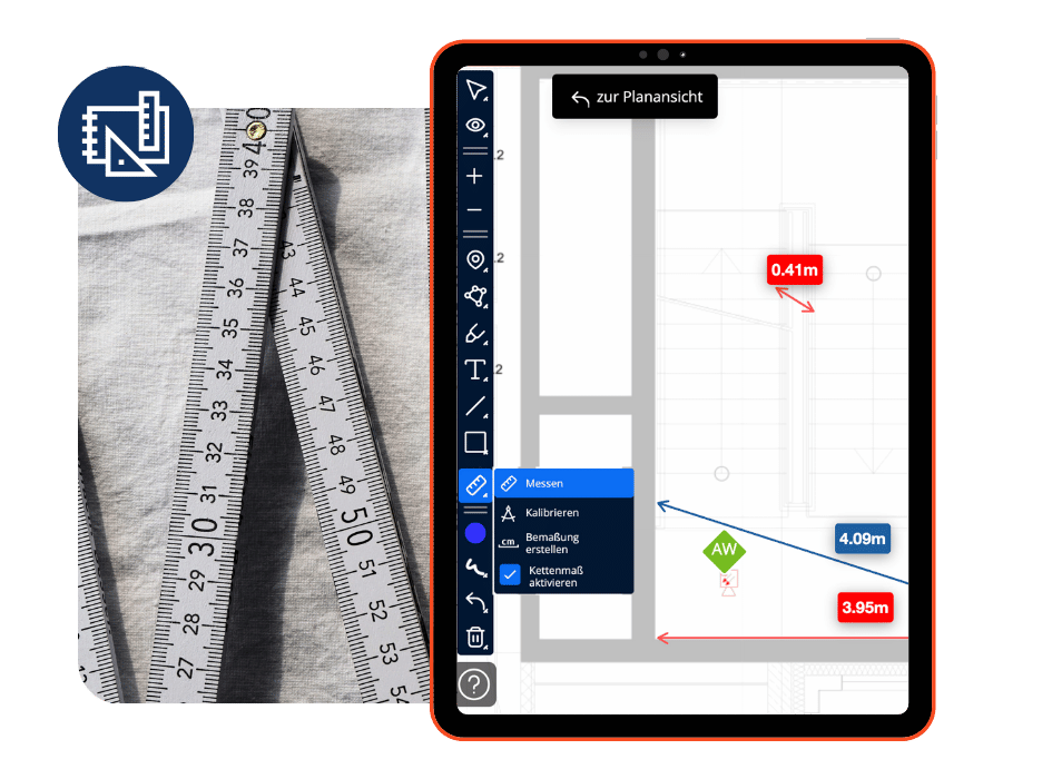 Messen Sie ganz einfach im digitalen Plan. Falls Änderungen oder Vermerke notwendig sind, können Sie diese direkt einzeichnen und ans Team weitergeben.