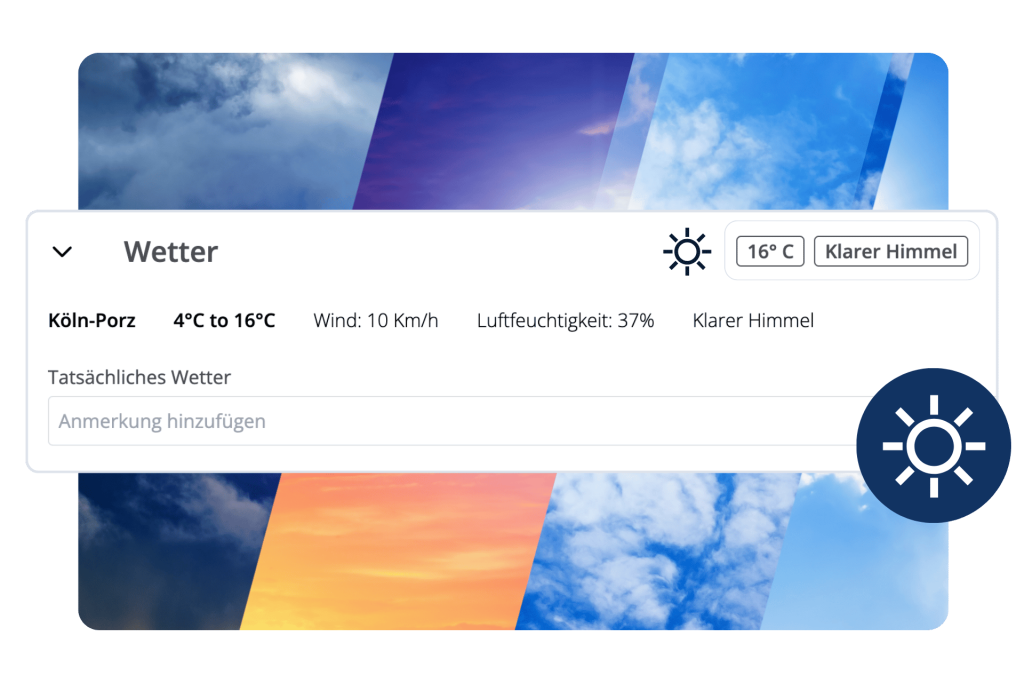 📌 Einfache Dokumentation – Wetter, Fortschritt und Besonderheiten wie Mängel direkt vor Ort erfassen.